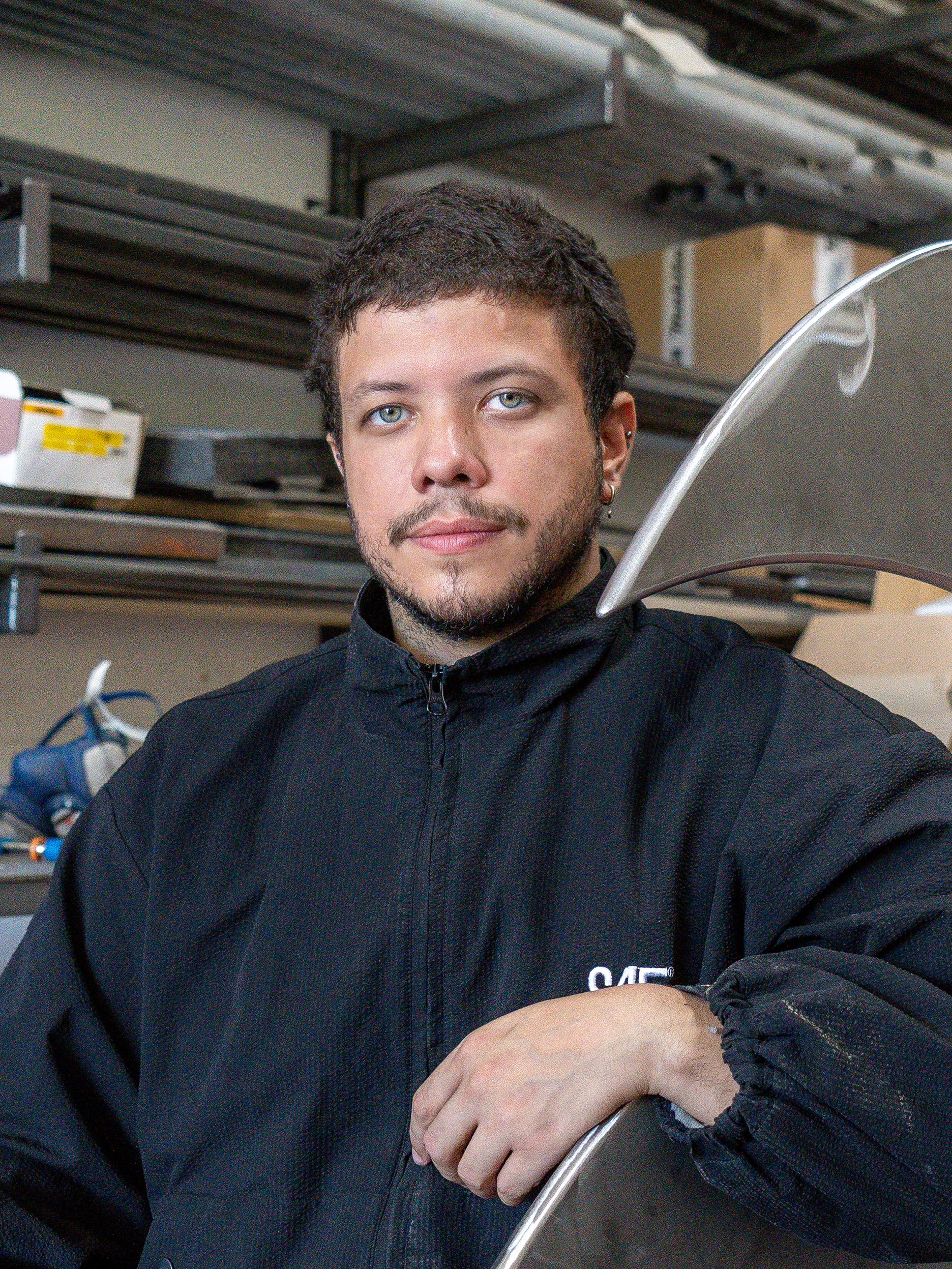 Rooted in collective practices initiated in 2014, Gabriel Moraes Aquino has been deeply engaged in collaborative approaches alongside Maxwell Alexandre, Raoni Azevedo, and Eduardo de Barros within the Gregário collective. Together, they invested in the urban fabric of Rio de Janeiro, organizing cultural activities and rehabilitating abandoned spaces into hubs for creative expression. Their discovery of a vast abandoned hotel of over 30,000 m², nestled in the heart of a mountain, marked their first use of unconventional spaces as workshops, a practice they pursued for nearly two years. This early experience of creation and community collaboration laid the foundation for Gabriel’s artistic vision and practice.