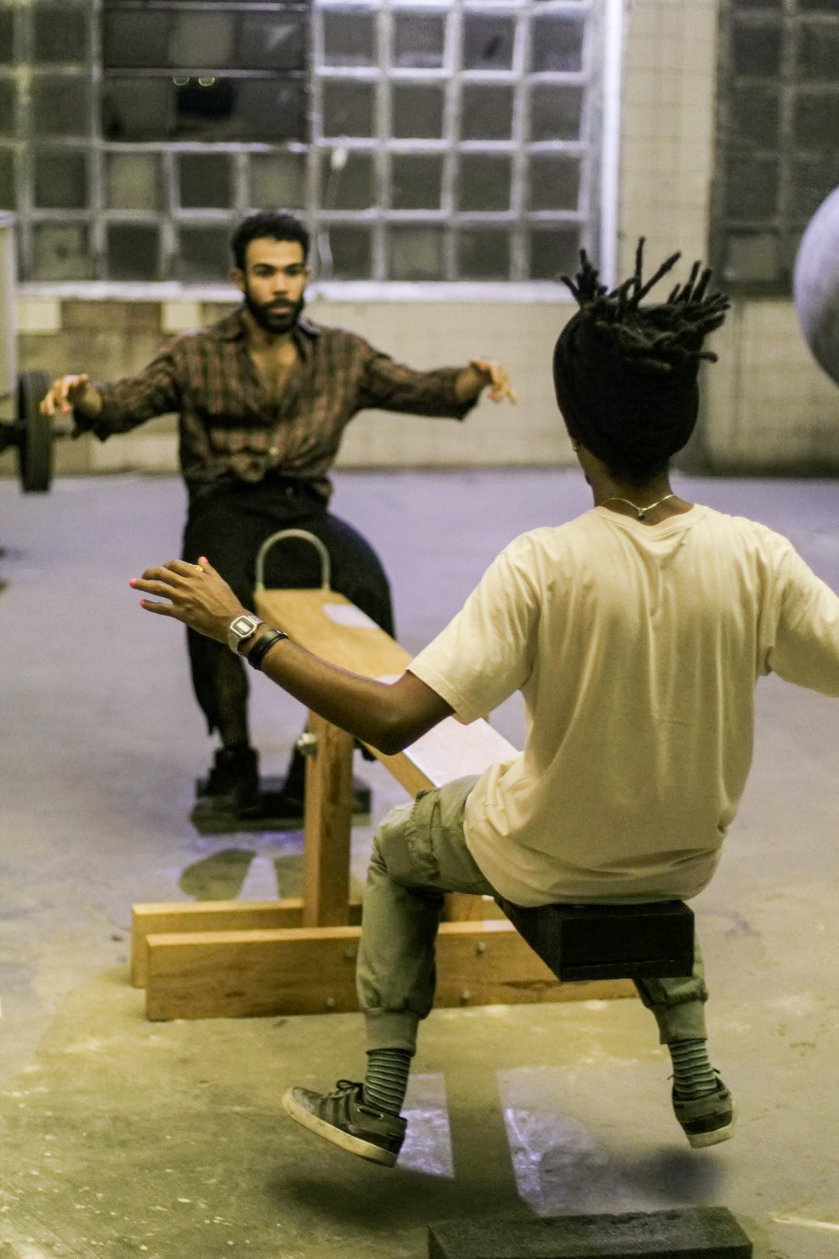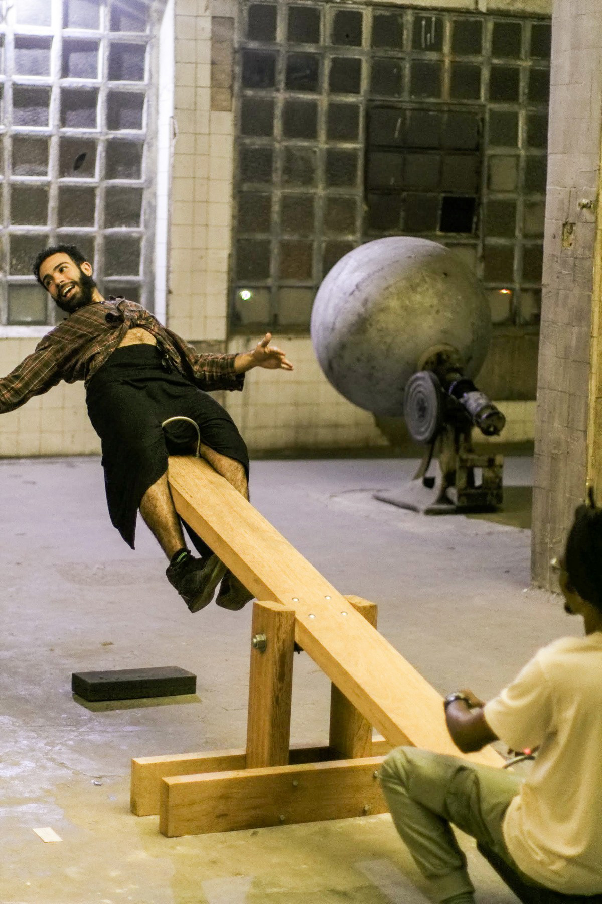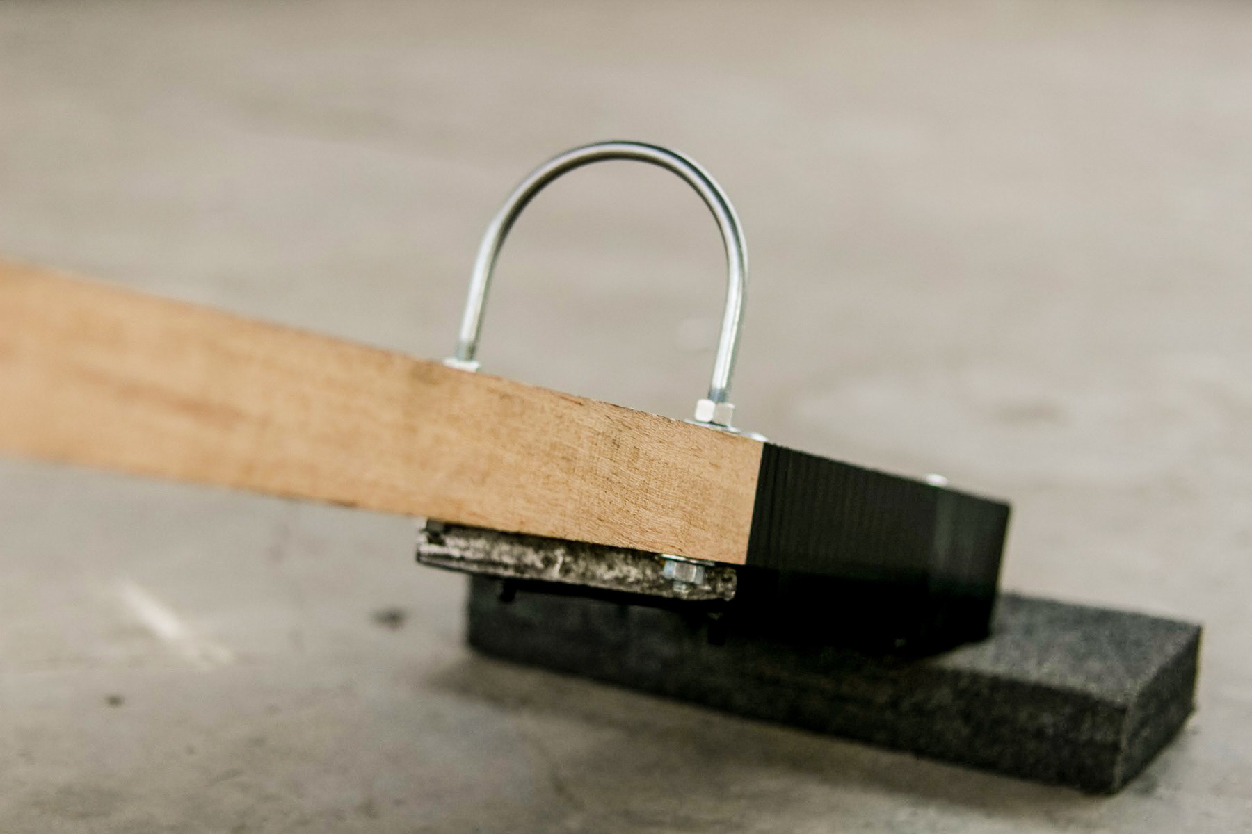 A seesaw with a 30 kg lead plate hidden under one of the two seats.